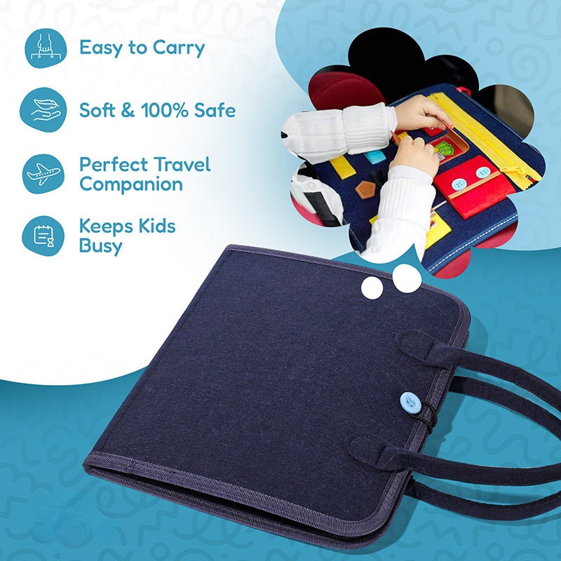 Long car rides or flights? The Busy Board keeps little travelers quietly engaged. Compact and lightweight — it fits easily in any bag, is simple to clean, and provides hours of meaningful, screen-free play.