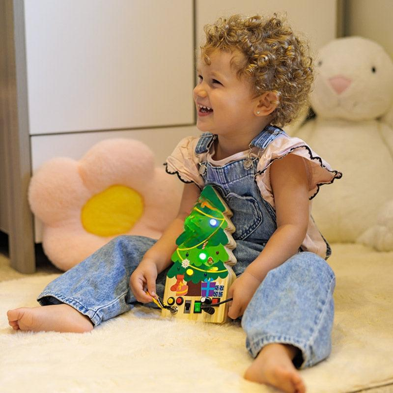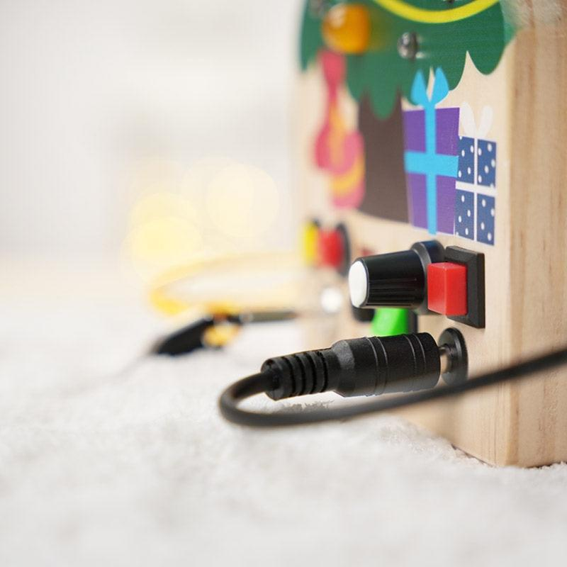 Buttons, switches, lights, and cables — everything little explorers love to touch, now in a safe and creative toy. This unique Christmas-themed switch board lets your child discover how things work while decorating a tree filled with light and imagination.