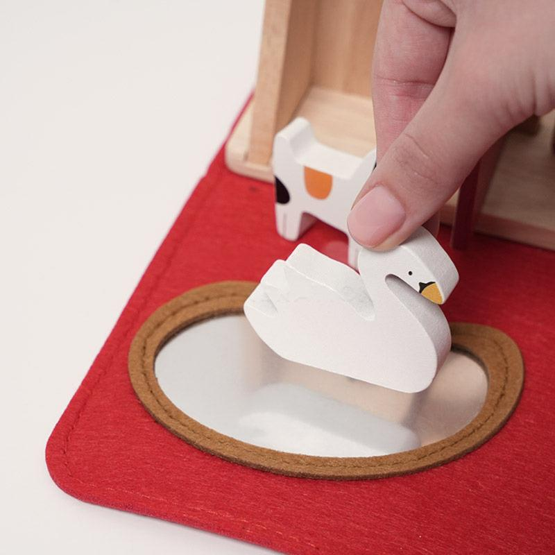 - Includes: Transformable farmstead bag + 16 wooden figurines