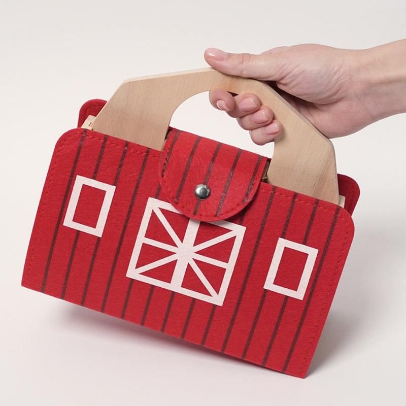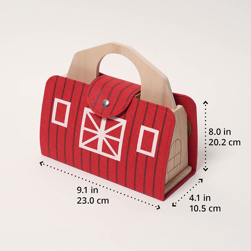 The sturdy wooden frame and soft felt cover transform the farmstead into a portable bag that fits plenty of toys. Perfect for trips, restaurants, family visits and everyday adventures.
