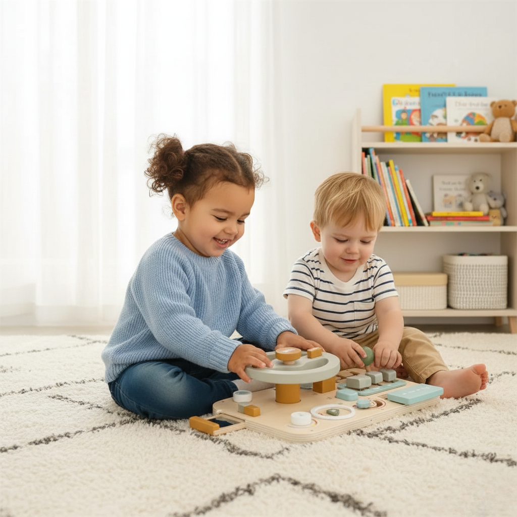 This engaging busy board invites children to experiment, turn, slide, press and pretend. Every movement encourages coordination, problem-solving, and a deeper understanding of how things work — all through playful exploration.