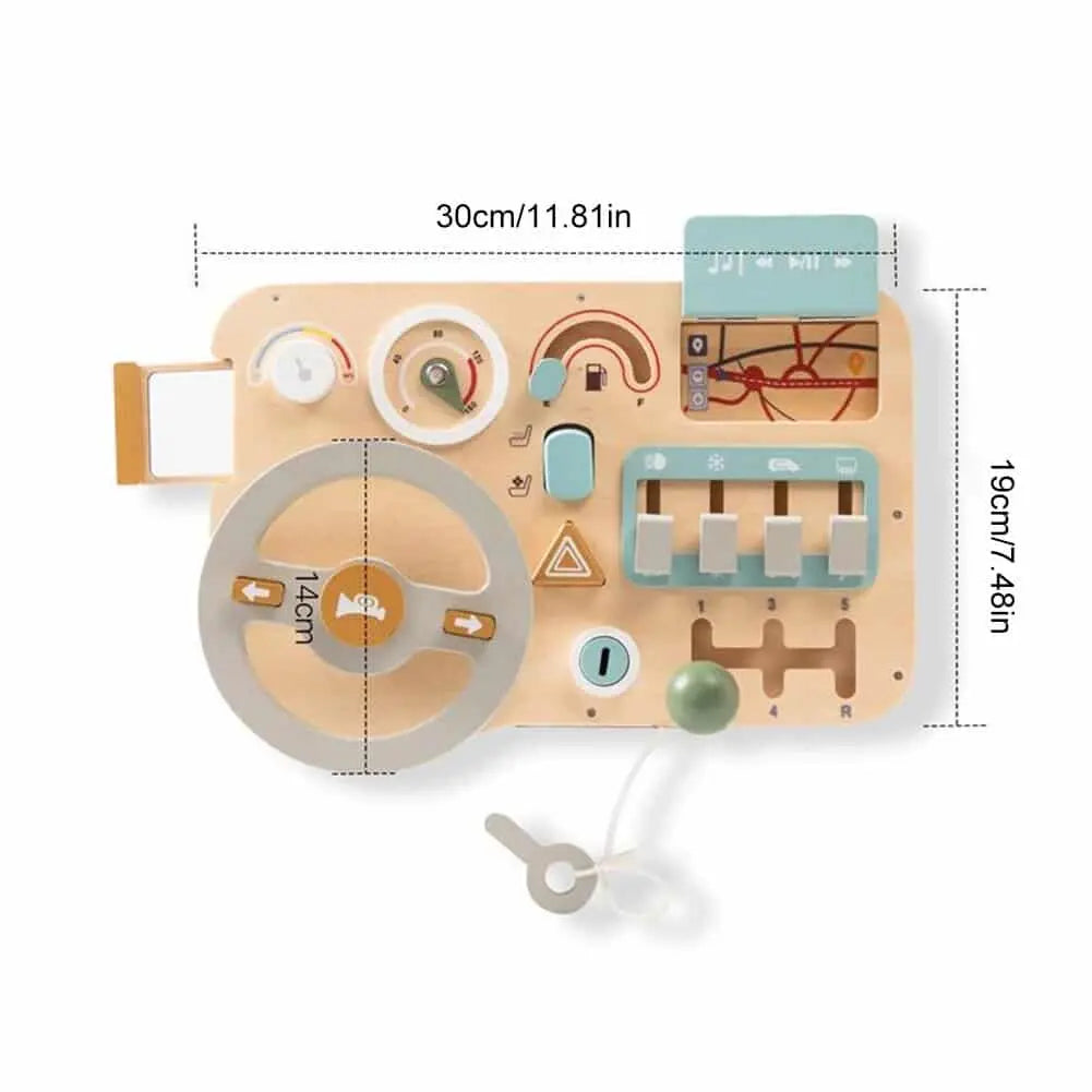 The Pure Joy Busy Board – Car Dashboard Edition transforms simple play into meaningful learning. With switches, gears, buttons and a smooth-turning steering wheel, little ones build fine motor skills, focus, and confidence through joyful exploration.