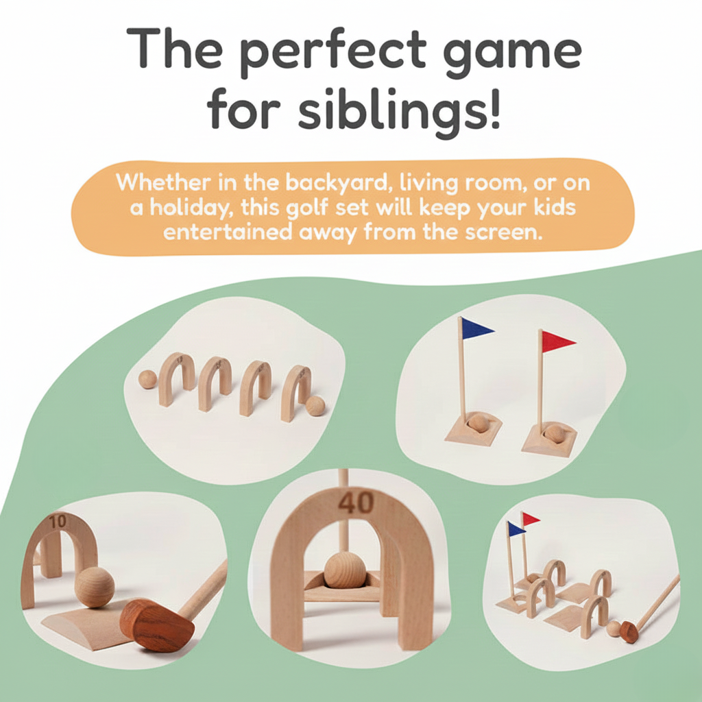 At first glance it’s “just golf” — but this set is packed with Montessori-aligned benefits. As your child aims, swings, and tries again, they naturally practice patience, focus, hand–eye coordination, balance, and motor control. It’s real-life play that supports real development.