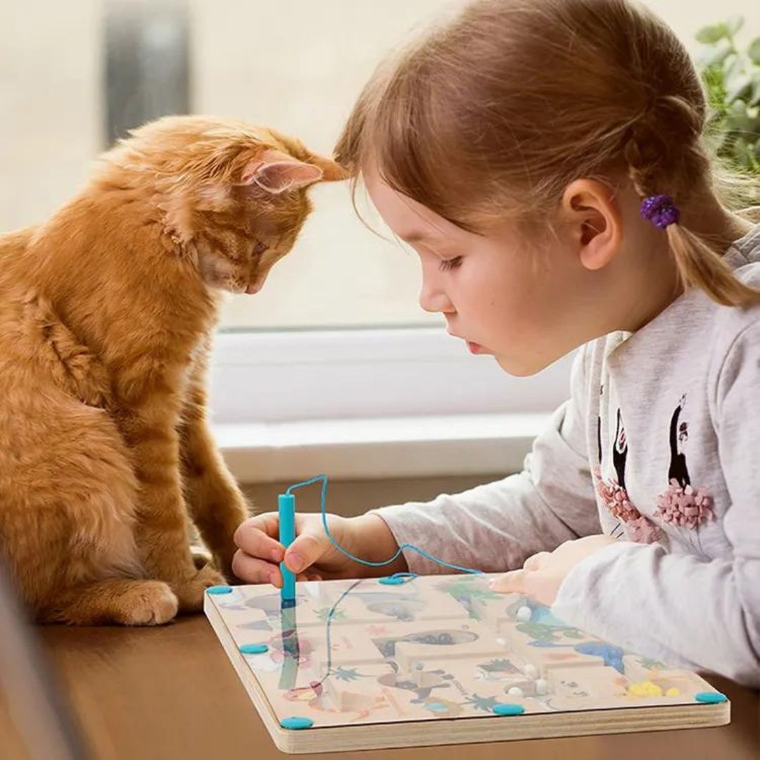Crafted from thick, eco-friendly wood with smooth edges, the maze is built for everyday use. The tethered magnetic pen ensures it never gets lost, while the compact design makes it easy to bring along for quiet, screen-free entertainment.